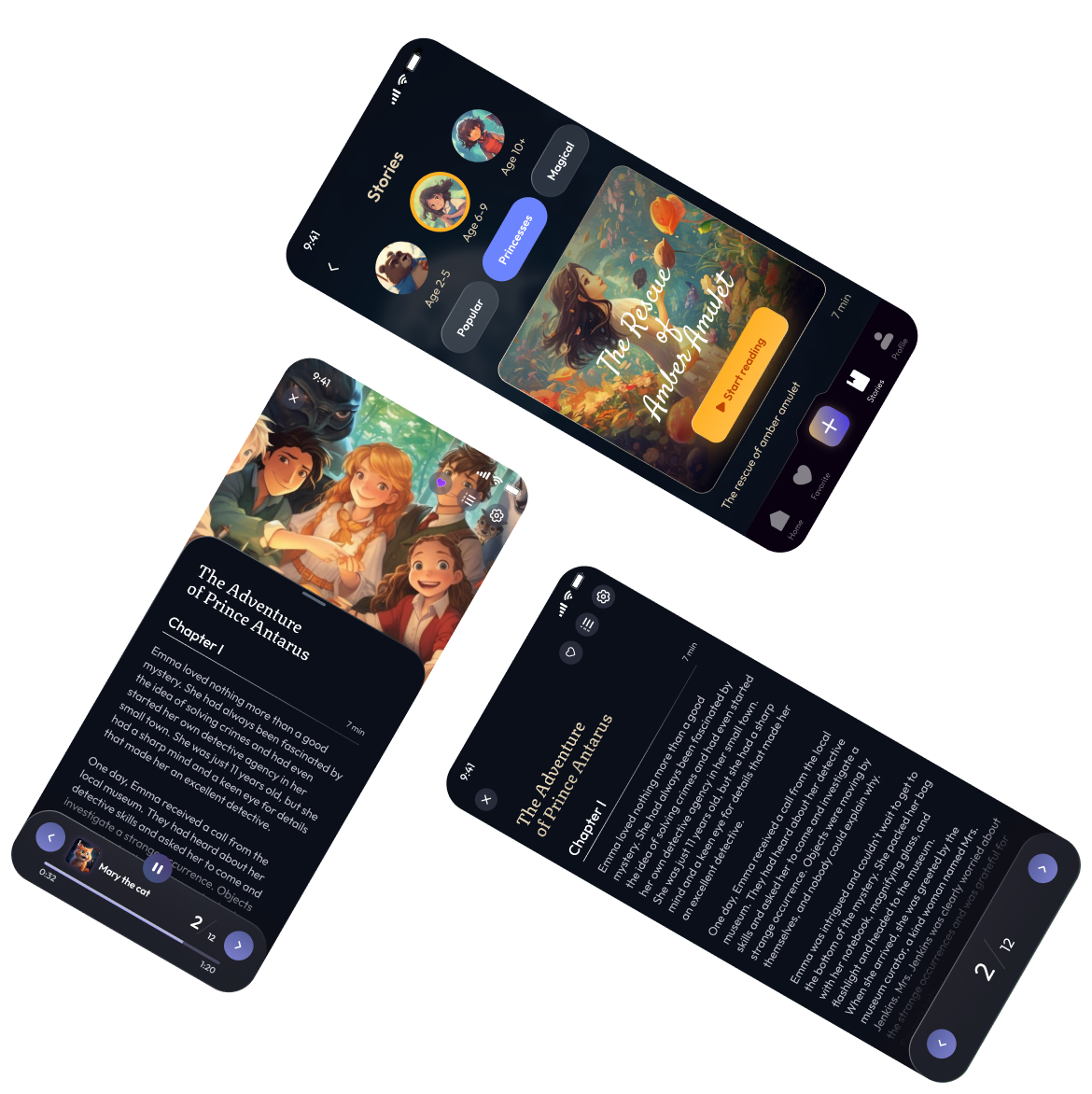 StoryScape is simple and intuitive to use. Start by selecting from a variety of age-appropriate stories or create your own unique tale by choosing characters, settings, and plot twists. Customize your story with different characters, from brave heroes to magical creatures, and select enchanting settings like mystical forests or sandy kingdoms. Kids can read or listen to stories, making choices that influence the outcome, enhancing their critical thinking and decision-making skills. Parents and children can bond over shared storytelling experiences, creating and enjoying stories together, and completed tales can be shared with friends and family for added fun and connection.